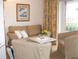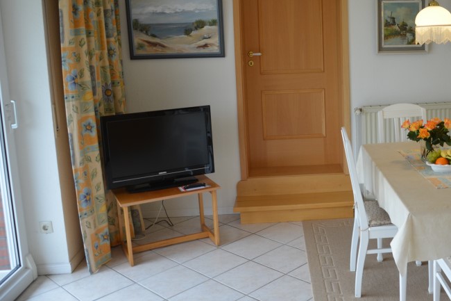 hochwertige Fliesen mit Teppichen, integrierte Deckenleuchten, Flat-TV, Föhn, Bügeleisen, Spielemagazin